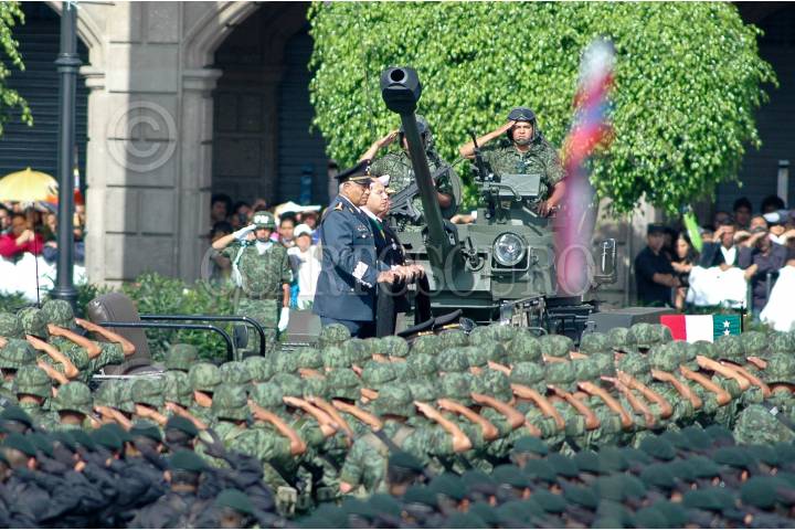 MÉXICO, D.F.16SEPTIEMBRE2009.- Carlos Navarrete, presidente del Senado de la República se despide del presidente Felipe Calderón al termino del Desfile Militar por el 199 aniversario del inicio de la lucha de Independencia que salio del Zócalo de la Ciudad de México hasta la Glorieta de la Diana Cazadora. FOTO: RODOLFO ANGULO/CUARTOSCURO.COM