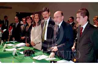Luis Felipe Bravo Mena, dirigente del CEN del PAN, en compañía de los principales candidatos a diputados federales en donde destaca Francisco Barrio, registro a los mismo ante el IFE. FOTO: Isaac Aguilar/CUARTOSCURO.COM