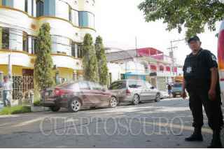 NACAJUCA, TABASCO, 18SEPTIEMBRE2009.- Elementos de la policía municipal resguardan la casa del Alcalde, Abenamar Leyva quien fue plagiado cuando salia de su domicilio ubicado en la calle Melchor Ocampo esquina José María Morelos de la colonia el Carmen. Reportes de las autoridades, revelan que el funcionario fue encontrado abandonado y mal herido después del secuestro en las inmediaciones del DIF por lo que fue trasladado al hospital Rovirosa de la entidad. FOTO: MARCO POLO GUZMÁN HERNÁNDEZ/CUARTOSCURO.COM