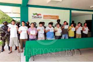 VILLAHERMOSA, TABASCO, 18SEPTIEMBRE2009.- Diez peligros delincuentes dedicados al plagio y trafico de personas en los municipios de Macuspana y Jalapa fueron presentados en las instalaciones de la Policía Ministerial. FOTO: MARCO POLO GUZMÁN HERNÁNDEZ/CUARTOSCURO.COM