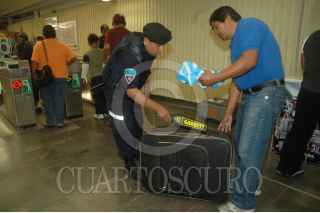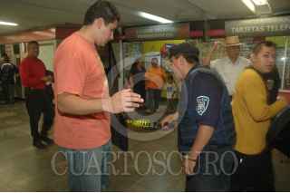 MÉXICO, D.F., 19SEPTIEMBRE2009.- Debido al incidente registrado el día de ayer en la estación del metro Balderas, donde dos personas perdieron la vida y otras mas resultaron herida, la SSP implemento desde el día de hoy un operativo de seguridad, que consta de equipo de detección de metales, se realizarán revisiones a hombres y mujeres sobre todo a usuarios que porten mochila, para evitar que al interior lleven algún tipo de arma. FOTO: LUZ MORENO/CUARTOSCURO.COM