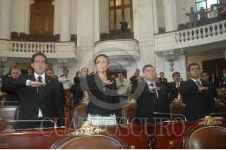 MÉXICO, D.F., 19SEPTIEMBRE2009.- Las Diputadas, Claudia Elena Torres, Alejandra Barrales y Aleida Alavez, integrantes de la mesa directiva de la ALDF ; Durante la Sesion solemne por el vigésimo cuarto Aniversario luctuoso de las personas fallecidas durante los sismos de 1985. FOTO: LUZ MORENO/CUARTOSCURO.COM