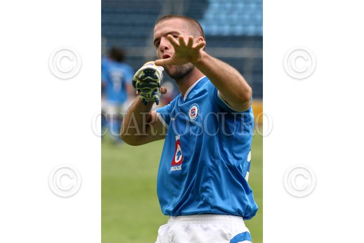 MÉXICO, D.F., 19SEPTIEMBRE2009.- Emanuel Villa de la maquina celeste del Cruz Azul celebra su anotación en contra del San Luis; partido de la jornada 9 del torneo Clausura 2009 que gano la maquina 4 goles a 2 en el estadio Azul. FOTO: RODOLFO ANGULO/CUARTOSCURO.COM