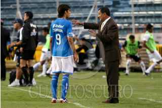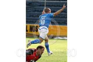MÉXICO, D.F., 19SEPTIEMBRE2009.- Emanuel Villa de la maquina celeste del Cruz Azul celebra su anotación en contra del San Luis; partido de la jornada 9 del torneo Clausura 2009 que gano la maquina 4 goles a 2 en el estadio Azul. FOTO: RODOLFO ANGULO/CUARTOSCURO.COM