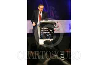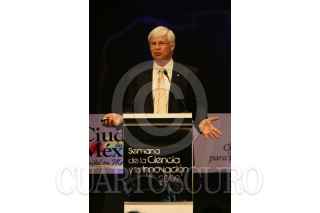 MÉXICO D.F., 22SEPTIEMBRE2009.- Martin Cooper, Premio Príncipe de Asturias 2009, durante su participación en la Semana de la Ciencia que se realiza en el Palacio de Minería de la UNAM. FOTO: GUILLERMO PEREA/CUARTOSCURO.COM