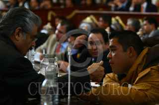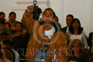MÉXICO, D.F., 22SEPTIEMBRE2009.- Cristian Vargas, diputado local del PRI, quién el día de ayer tomó por la fuerza una oficina que supuestamente le correspondía a su bancada con vista al Zócalo capitalino, y para conseguirlo rompió una puerta de cristal, que se hizo añicos, durante la sesión en la Asamblea Legislativa. FOTO: SÁSHENKA GUTIÉRREZ/CUARTOSCURO.COM