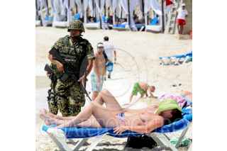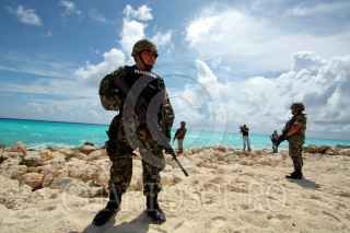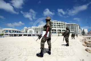 CANCUN, QUINTANA ROO, 23SEPTIEMBRE2009.- la Procuraduría Federal de Protección al Ambiente (Profepa) en compañía del ejercito y la marina, realizaron un operativo en las playas del hotel Gran Caribe Real donde encontraron que en vez de retirar los espigones se pudo constatar un mayor relleno de playa. FOTO: AMARANTA PRIETO/CUARTOSCURO.COM