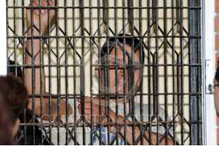 MÉXICO, D.F., 23SEPTIEMBRE2009.- Luis Felipe Hernández Castillo, quien disparó en contra de un policía bancario y un civil en la estación del metro Balderas de lla línea 3 dirección sur-norte, a quienes les quitó la vida e hirió a otros ocho pasajeros, fue presentado en la rejilla de prácticas del juzgado 56 penal del Reclusorio Oriente en donde el juez le dictó auto de formal por los delitos de homicidio calificado y lesiones. FOTO: LUIS CARBAYO/CUARTOSCURO.COM