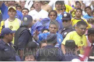 Luego del 3-1 de Cruz Azul sobre el América en el llamado "clásico jóven", algunos jóvenes discutieron con los elementos de seguridad. FOTO: Juan Pablo Zamora/CUARTOSCURO.COM