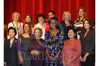 PITTSBURGH, PENNSYLVANIA, 25SEPTIEMBRE2009.- Margarita Zavala, primera dama de México y conversa con Sonsoles Espinosa, primera dama española durante la visita a la escuela "Creative and Performinig Arts High School". FOTO: IMPERIO RESENDIZ/CUARTOSCURO.COM
