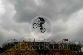 MÉXICO, D.F., 26SEPTIEMBRE2009.- Cientos de jóvenes de dieron cita en la explanada del Estadio Azteca donde se realizo el festival Snickers Urbamania, pudiendo así observar competencias de Skate, Motocross y BMX. FOTO: SÁSHENKA GUTIÉRREZ/CUARTOSCURO.COM