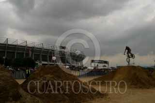 MÉXICO, D.F., 26SEPTIEMBRE2009.- Cientos de jóvenes de dieron cita en la explanada del Estadio Azteca donde se realizo el festival Snickers Urbamania, pudiendo así observar competencias de Skate, Motocross y BMX. FOTO: SÁSHENKA GUTIÉRREZ/CUARTOSCURO.COM