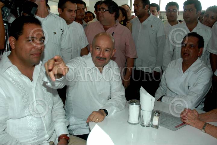 BOCA DEL RIO, VERACRUZ. 26SEPTIEMBRE2009.- Carlos Salinas de Gortari, Ex-Presidente de México, acompañado de Fidel Herrera Beltrán, gobernador de la entidad, acudieron a "La Parroquia" a tomarse su café con un churro, previamente el ex-mandatario había dictado la conferencia magistral "El Mundo en la Crisis Económica", en el Centro Libanes. FOTO: JOSÉ CANDELARIO/CUARTOSCURO.COM