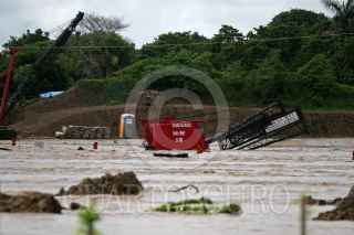 VILLAHERMOSA, TABASCO, 27SEPTIEMBRE2009.- El río de la Sierra crece a medida alarmante y en su cause se lleva a maquinarias pesadas y alcanza casas que las inunda. FOTO: MARCO POLO GUZMÁN HERNÁNDEZ/CUARTOSCURO.COM