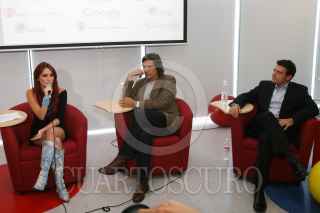MÉXICO D.F. 28SEPTIEMBRE2009.- La cantante y actriz, Dulce María, acompañada de Yadira Monroy Zermeño, Directora de Mercadotecnia de Save The Children, Ma. Josefina Menéndez Directora de Save the Children, Pedro Damian y John Farrel, Director General para Google en México, durante la conferencia donde se dieron a conocer los pormenores del concurso “Tecnología Sí, conéctate con responsabilidad” el cual invita a adolescentes entre 13 y 18 años a contar como usar de manera responsable Internet y los dispositivos tecnológicos. FOTO: GUILLERMO PEREA/CUARTOSCURO.COM