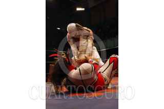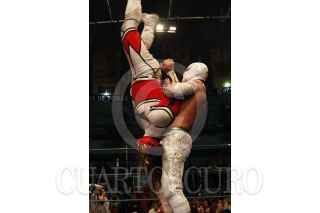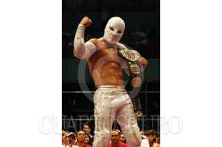 PUEBLA, PUEBLA, 29SEPTIEMBRE2009.- El luchador mexicano, Místico, derrotó en la Arena Puebla a su oponente japonés, Lyger, quien lo retó la última vez que se vieron las caras para disputarse el campeonato mundial junior de la IWGP. Durante la primera caída el ídolo nacional, enfrentó dificultades para combatir a su oponente asiático, pero en el transcurso de la segunda y tercera caída, Místico salió airoso del pancracio poblano. FOTO: FRANCISCO GUASCO/CUARTOSCURO.COM