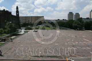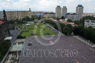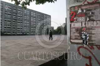 MÉXICO D.F., 29SEPTIEMBRE2009.- A 41 años del movimiento estudiantil de 1968, así luce la Plaza de las Tres Culturas ubicada en Tlatelolco, escenario donde ocurrió la matanza de decenas de personas. En el lugar se encuentran varias pancartas que hacen alusión a eventos culturales que se realizaran para conmemorar ese día. FOTO: ENRIQUE ORDÓÑEZ/CUARTOSCURO.COM
