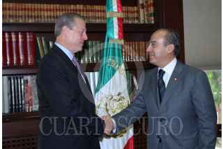MÉXICO, D.F., 29SEPTIEMBRE2009.- Al Gore, expresidente de Estados Unidos y ganador del Premio Nobel de la Paz 2007 y Felipe Calderón Hinojosa, presidente de México, durante la reunión en la residencia Oficial de Los Pinos. FOTO: IMPERIO REDENDIZ/CUARTOSCURO.COM