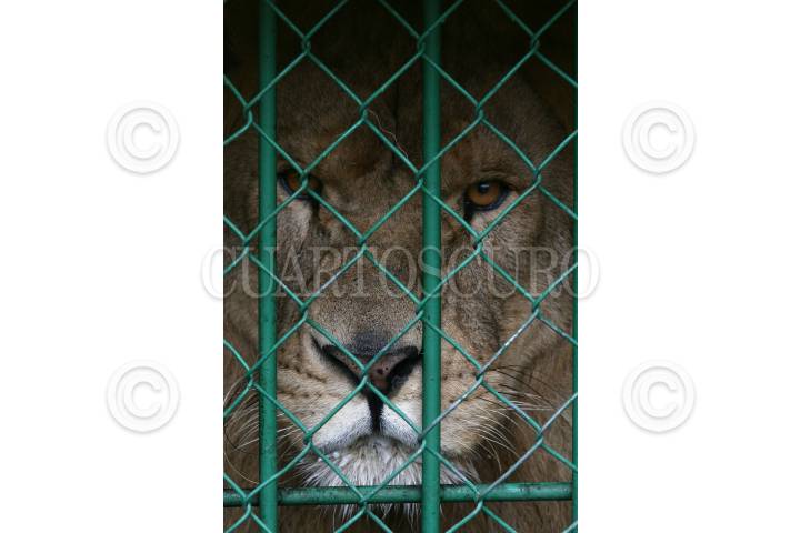 CIUDAD NEZAHUALCOYOTL, ESTADO DE MÉXICO., 29SEPTIEMBRE2009.- Un leon dentro de una jaula en el zoologico Parque del Pueblo en Ciudad Nezahualcoyotl. FOTO: SAÚL LÓPEZ/CUARTOSCURO.COM
