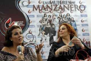 PUEBLA, PUEBLA, 29SEPTIEMBRE2009.- Las cantantes Edith Márquez y María del Sol, durante la conferencia donde anunciaron los pormenores del concierto que protagonizarán con el compositor mexicano, Armando Manzanero, en el espectáculo llamado "Las Mujeres de Manzanero" el próximo 17 de Octubre en el Complejo Cultural Universitario de la BUAP. FOTO: FRANCISCO GUASCO/CUARTOSCURO.COM