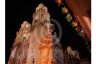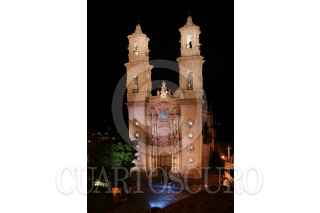 TAXCO, GUERRERO, 30SEPTIEMBRE2009.- La iglesia de Santa Prisca se ve envuelta en luces tras el proyecto de iluminación que se llevo a cabo con el fin de crear una mejor vista a dicha arquitectura. FOTO: MAURICIO MARAT/INAH/CUARTOSCURO.COM