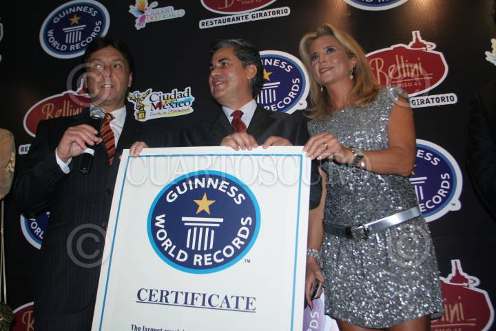 MÉXICO, D.F., 01OCTUBRE2009.- Alejandro Rojas Diaz, Secretario de Turismo del D.F., entrego el reconocimiento de Récord Guiness al restaurante giratorio más grande del mundo en el World Trade Center (WTC) de la Ciudad de México. FOTO: ENRIQUE ORDÓÑEZ/CUARTOSCURO.COM