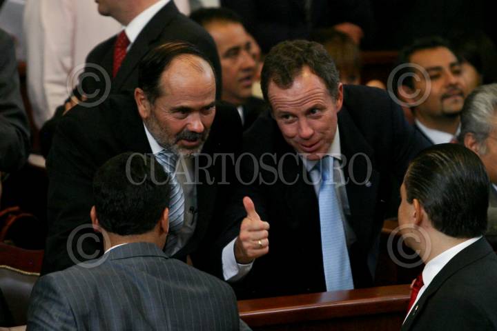 MÉXICO, D.F., 01OCTUBRE2009.- La asambleísta Mariana Gomez del campo y presidenta del PAN-DF felicita a Rafael Acosta "Juanito" delegado por Iztapalapa y a Carlos Ovañados delegado de Cuajimalpa durante la ceremonia de toma de posesión para Jefes Delegacionales para el periodo 2009-2012 que se realizo en el recinto Legislativo de Donceles. FOTO: RODOLFO ANGULO/CUARTOSCURO.COM