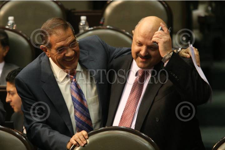 MÉXICO D.F., 01OCTUBRE2009.- Francisco Rojas Diputado y coordinador del PRI, dialoga con Guadalupe Acosta Naranjo Diputados del PRD, durante la sesión en la Cámara de Diputados. FOTO: GUILLERMO PEREA/CUARTOSCURO.COM