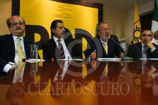 MÉXICO, D.F., 01OCTUBRE2009.- El senador perredista, Graco Ramirez ju8nto a Jesús Ortega Martínez Presidente Nacional del PRD, Jorge Eduardo Navarrete y Saul Escobar durante la entrega de una propuesta fiscal elaborada por economistas de la Universidad Nacional Autónoma de México. FOTO: ENRIQUE ORDÓÑEZ/CUARTOSCURO.COM