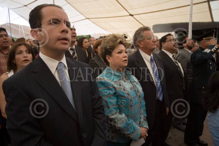 QUERETARO, QUERETARO, 01OCTUBRE2009.- Aspectos de la toma de protesta de Francisco Domínguez Sevién como presidente municipal de la capital Queretana. Emanado del PAN. A este evento le acompañaron el dirigente nacional de este partido Cesar Nava, los senadores Santiago Creel, Alberto Cardenas, Eduardo Nava Bolaños y el ex senador Diego Fernández de Ceballos. Como invitado especial estuvo presente el recien nombrado gobernador priísta José Calzada. FOTO: DEMIAN CHÁVEZ/CUARTOSCURO.COM