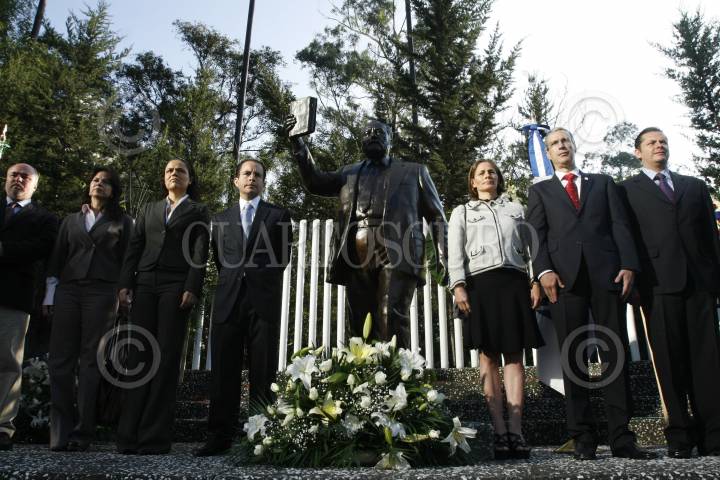 MÉXICO, D.F., 01OCTUBRE2009.- Manuel Clouthier Carrilo, diputado federal panista, encabezó el homenaje por su 20 aniversario luctuoso de Manuel J. Clouthier Maquío, en el monumento de bronce de quien fuera ex-candidato presidencial de este partido en 1988. FOTO: IVÁN MENDEZ/CUARTOSCURO.COM