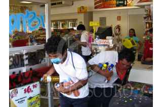 CHILPANCINGO, GUERRERO, 02OCTUBRE2009.- Integrantes de la Federacion Estudiantil Universitaria Guerrerense (FEUG), realizaron una marcha por las principales calles y avenidas de la capital del estado, para conmemorar el 41 aniversario de la masacre del 2 de octubre de 1968. Cabe mencionar que durante la marcha seudoestudiantes de la UAG, pintarrajeraron con grafitis las fachadas de varios edificios públicos, monumentos historicos, asi como bancos y tiendas de autoservicio, las cuales saquearon. FOTO: OSCAR ALVARADO/CUARTOSCURO.COM