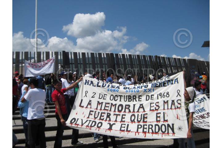 MÉXICO, D.F., 02OCTUBRE2009.- Granaderos de la Policía del Distrito Federal se enfrentaron contra las organizaciones sindicales y estudiantiles frente al Palacio de Bellas Artes en el marco de la marcha para conmemorar la masacre del 2 de octubre de 1968 en Tlatelolco. FOTO: RODOLFO ANGULO/CUARTOSCURO.COM