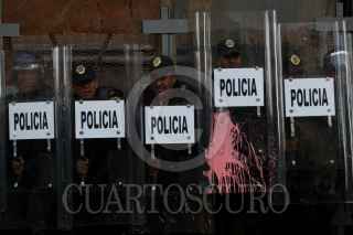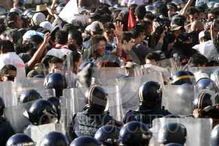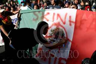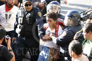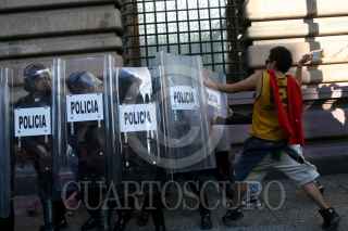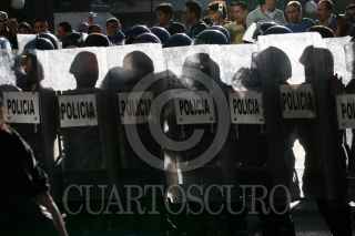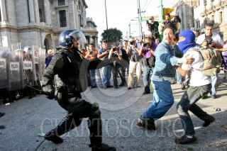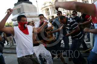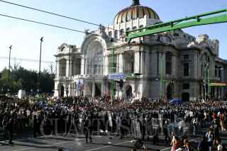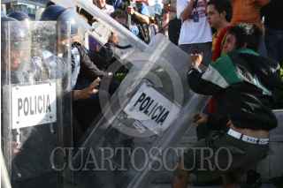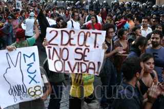 MÉXICO, D.F., 02OCTUBRE2009.- Granaderos de la Policía del Distrito Federal se enfrentaron contra las organizaciones sindicales y estudiantiles frente al Palacio de Bellas Artes en el marco de la marcha para conmemorar la masacre del 2 de octubre de 1968 en Tlatelolco. FOTO: RODOLFO ANGULO/CUARTOSCURO.COM