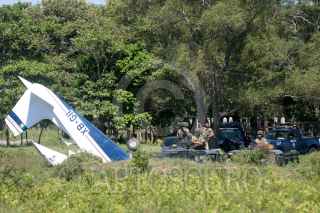 VILLAHERMOSA, TABASCO, 04OCTUBRE2009.- Cinco heridos de gravedad deja el desplome de una avioneta tipo Cessna cuando sobrevolaba una zona de la villa Macultepec. En ese preciso lugar le falla una turbina y se impacta contra la tierra de un rancho ganadero cercano al campo de practicas de tiros de la 30 Zona Miliar, razón por la cual paramédicos de la Cruz Roja prestan los primeros auxilios mientras que las fuerzas castrense y Policía Estatal resguardan el lugar de los hechos. FOTO: MARCO POLO GUZMÁN HERNÁNDEZ/CUARTOSCURO.COM