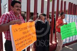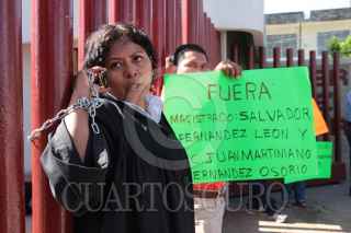 VILLAHERMOSA, TABASCO, 05OCTUBRE2009.- Como respuesta al repudio en la corrupción y trafico de influencias de los magistrados y jueces en el Palacio de Justicia Federal, la juez de primera instancia Juliana Quen Pérez se encadeno, entre protestas y denuncias se quitó la “Toga” y le prendió fuego. FOTO: MARCO POLO GUZMÁN HERNÁNDEZ/CUARTOSCURO.COM