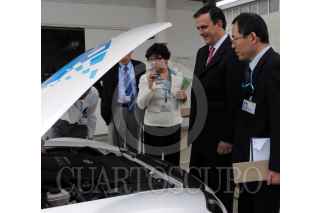 HIROSHIMA, JAPON, 05OCTUBRE2009.- Marcelo Ebrard Casaubon, jefe de Gobierno del Distrito Federal durante su visita a la fabrica automotriz Mezda la cual produce vehículos híbridos movidos con energía eléctrica e hidrógeno FOTO: CUARTOSCURO.COM