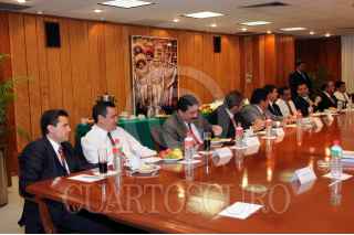 MÉXICO, D.F., 05OCTUBRE2009.- Esta tarde la dirigencia del Comité Ejecutivo Nacional del PRI, encabezada por la diputada Beatriz Paredes y el senador Jesús Murillo Karam, convocaron auna reunión con sus gobernadores. En ella, estuvieron presentes los Coordinadores de los Grupos Parlamentarios en la Cámara de Diputados, Francisco Rojas Gutiérrez, y en el Senado de la República, Manlio Fabio Beltrones, además de 17 gobernadores priistas. Al encuentro que se llevó a cabo en la sala “Francisco Ruiz Massieu” de la sede nacional priista, acudió también el senador Francisco Labastida Ochoa. FOTO: CUARTOSCURO.COM