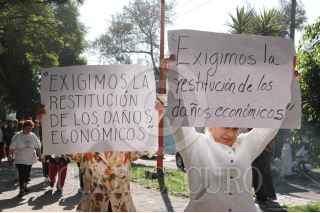 TLALNEPANTLA, ESTADO DE MÉXICO, 06OCTUBRE2009.- A un mes de colapsarse el emisor poniente en Valle Dorado, al menos 300 vecinos se manifestaron para exigir apoyo por parte del gobierno para la reparación de sus viviendas. FOTO: MARIO NULO/CUARTOSCURO.COM