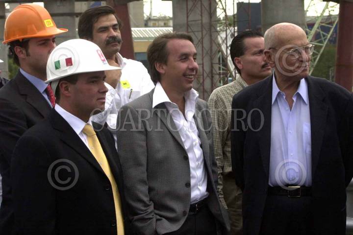 El jefe de Gobierno y la secretaria del medio ambiente capitalinos, Andrés Manuel López Obrador y Claudia Sheimbaum, explican al presidente Fox el tipo de luminarias que se instalaron en el distribuidor víal San Antonio. FOTO: Juan Pablo Zamora/CUARTOSCURO.COM