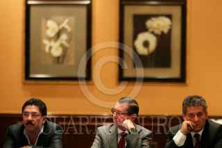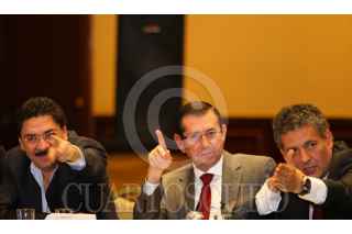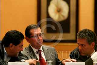 MÉXICO D.F.06OCTUBRE2009.- Ulises Ruiz Ortiz, Gobernador del Estado de Oaxaca, Zeferino Torre Blanca, Gobernador del Estado de Guerrero y Juan Sabienes Guerrero, Gobernador del Estado de Chiapas, durante la durante el análisis económico y de crecimiento del Programa del Sur. FOTO: GUILLERMO PEREA/ CUARTOSCURO.COM