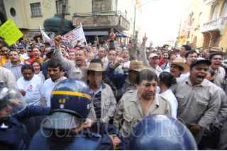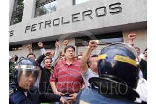 MÉXICO, D.F., 08OCTUBRE2009.- Petroleros de la Sección 47 adheridos a los simpatizantes de Aduardo Aburto Toledo intentaron tomar las instalaciones del Sindicato de Petróleos en la colonia Guerrero. FOTO: LUIS CARBAYO/CUARTOSCURO.COM