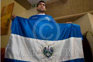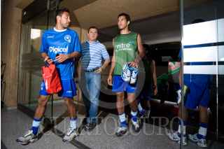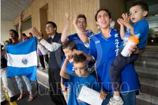 QUERETARO, QUERETARO, 08OCTUBRE2009.- Aficionados salvadoreños apoyaron a su equipo que entrenó en esta ciudad, esto como parte de su preparación para el partido en contra de la Selección Mexicana, en busca de su pase a el Mundial de Fútbol de Sudáfrica. FOTO: DEMIÁN CHÁVEZ/CUARTOSCURO.COM