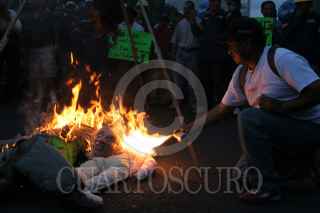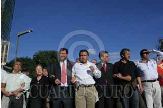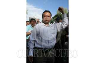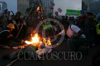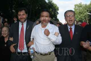 MÉXICO D.F. 08OCTUBRE2009.- Integrantes del Sindicato Mexicano de Electricistas encabezaron una marcha del Ángel de la Independencia a la Residencia Oficial de los Pinos donde una comitiva encabezada por Martín Esparza, dirigente del (SME) lograron ingresar para exponer sus peticiones de que se le reconociera como líder de este gremio. FOTO: ENRIQUE ORDÓÑEZ/CUARTOSCURO.COM