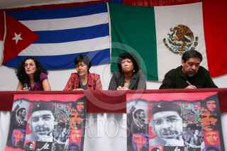 MÉXICO D.F., 08OCTUBRE2009.- Dulce María Buergo Rodríguez , consejera de la Embajada de Cuba, Dalia Eloísa Lagonell Castillo, encargada de negocios en la Embajada de la República Bolivariana de Venezuela, y Jesus Escamilla, del Movimiento Mexicano de Solidaridad con Cuba encabezaron una charla con motivo del 42o aniversario luctuoso del revolucionario Ernesto "Che" Guevara. FOTO: ISAAC ESQUIVEL/CUARTOSCURO.COM
