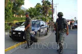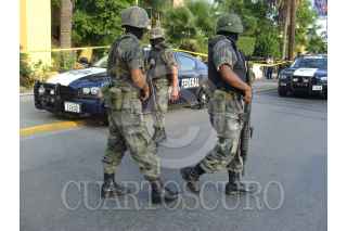 MONTERREY, NUEVO LEÓN, 08OCTUBRE2009.- Soldados inspeccionan el lugar en donde se registro una balacera entre federales y presuntos delincuentes, al parecer los federales trasladaban a cinco detenidos cuando fueron emboscados la patrulla en la viajaban fue baleada, esto en una de las avenidas mas transitadas de esta capital. Dos agentes y tres civiles resultaron heridos, según informaron las autoridades. FOTO: VÍCTOR BADILLO/CUARTOSCURO.COM