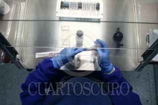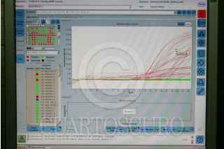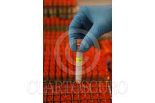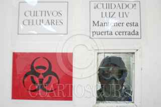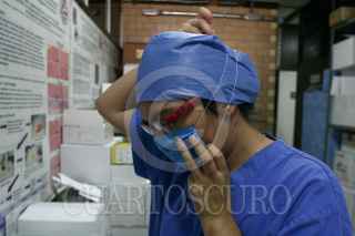 MÉXICO, D.F., 09OCTUBRE2009.- Investigadores del Laboratorio de Conservación de la Escuela Superior de Medicina del Instituto Politécnico Nacional trabajan en la exploración y análisis del virus AH1N1. Para acceder a este lugar existe un estricto control de sanidad: batas, cofias, guantes, cubrebocas y zapatos deben de ser esterilizados. Cuentan con robots, campanas de bioseguridad y escáner digital para la detección de los virus AH1N1 y H5. Los laboratoristas reciben muestras en tubos de transporte enviados por hospitales de todo el país, las cuales son colocadas en refrigeradores y posteriormente en tubos criovirales y gradillas para someterlos al análisis. El proceso de escaneo tarda alrededor de tres horas. Las pruebas son proyectadas en una computadora que analiza el material genético para definir si la persona está infectada. Todo el material empleado en el muestreo y análisis se utiliza sólo una vez y es desechado en bolsas de bioseguridad. El doctor Héctor Manuel Zepeda López, encargado del laboratorio, lleva diariamente el registro de cada caso y realiza gráficas sobre la reacción del virus, esta información es estudiada por un grupo de especialistas en el tema. FOTO: SAÚL LÓPEZ/CUARTOSCURO.COM