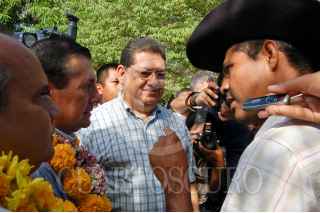 ACAPULCO, GUERRERO, 09OCTUBRE2009.- El vocero del Consejo de Ejidos y Comunidades Opositoras al proyecto hidroeléctrico de la Parota (CECOP), increpo al gobernador de Guerrero durante una gira por el poblado de Agua caliente, municipio de Acapulco, Guerrero la falta de obras en esa zona y pidió reconocer aq su gente en todo tipo de decisiones. FOTO: MARINO D. VALDEZ/CUARTOSCURO.COM