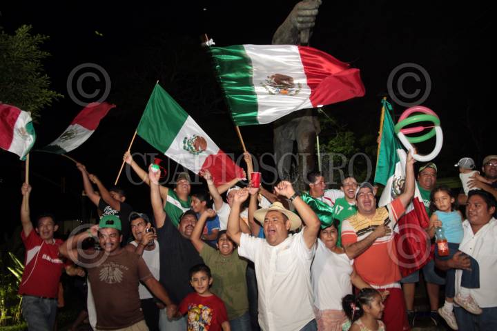 VILLAHERMOSA, TABASCO, 10OCTUBRE2009.- Cientos de tabasqueños; niños, mujeres y jóvenes comparten el triunfo de la selección de México que obtuvo su pase al mundial y lo festejan en el monumento al deportista que se ubica en la deportiva de esta capital. FOTO: MARCO POLO GUZMÁN HERNÁNDEZ/CUARTOSCURO.COM