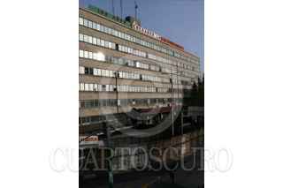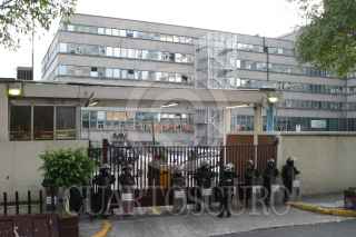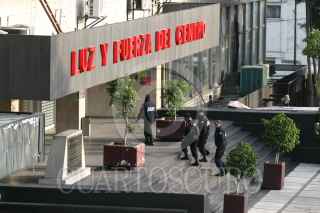 MÉXICO, D.F., 11OCTUBRE2009.- Una reja metálica fue colocada a los alrededores de la oficina central de la compañía de Luz y Fuerza del Centro (LyFC) en donde la noche de ayer elementos de la Policía Federal ocuparon sus instalaciones después de un decreto presidencial publicado en el Diario Oficial de la Federación en el que se determina la extinción de ese organismo descentralizado y que será incorporado a la Comisión Federal de Electricidad (CFE). FOTO: RODOLFO ANGULO/CUARTOSCURO.COM